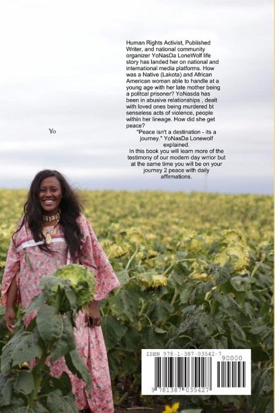 Human rights activist, published writer, and national community organizer Yo'NasDa Lonewolf life story has landed her on national and international media platforms. How was a Native (Lakota) and African American woman able to handle at a young age with her late mother being a political prisoner? YoNasDa has been in abusive relationships, dealt with loved ones being murdered by senseless acts of violence, homelessness, a single mother of two sons, all trying to maintain a beautiful legacy of strong influential people within her lineage. How did she get peace? "Peace isn't a destination- its a journey." YoNasDa Lonewolf explained. In this book you will learn more of the testimony of our modern day warrior but at the same time you will be on your own journey 2 peace with daily affirmations.