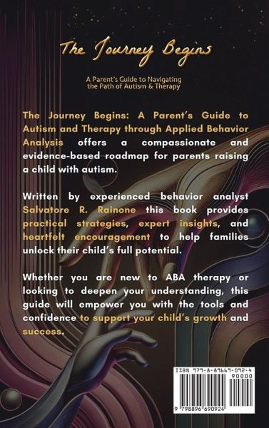 Parenting a child with autism comes with unique challenges, but you don't have to face them alone. The Journey Begins: A Parent's Guide to Autism and Therapy through Applied Behavior Analysis is a compassionate and practical resource designed to empower parents with the knowledge and strategies needed to help their child thrive. Drawing on over 20 years of experience in Applied Behavior Analysis (ABA), Salvatore R. Rainone, BCBA, LBA, breaks down complex concepts into clear, actionable steps. This guide covers essential topics, including:Understanding the principles of ABA and how they support skill development Setting measurable goals to track progress effectively Encouraging consistency at home, school, and in the community Strengthening family involvement in therapy Building patience, resilience, and a positive mindset for both parents and children With expert insights and real-world advice, this book is an invaluable tool for any parent seeking to foster their child's independence, communication, and overall well-being. Take the first step in your journey today and discover the power of ABA therapy in transforming your child's future.