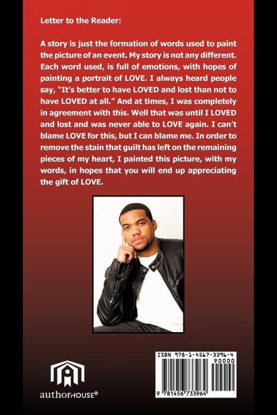 Letter to the Reader: A story is just the formation of words used to paint the picture of an event. My story is not any different. Each word used, is full of emotions, with hopes of painting a portrait of LOVE. I always heard people say, "It's better to have LOVED and lost than not to have LOVED at all." And at times, I was completely in agreement with this. Well that was until I LOVED and lost and was never able to LOVE again. I can't blame LOVE for this, but I can blame me. In order to remove the stain that guilt has left on the remaining pieces of my heart, I painted this picture, with my words, in hopes that you will end up appreciating the gift of LOVE.