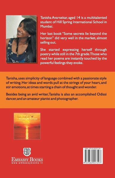 This is tanisha's second collection of poems. The first, titled some secrets lie beyond the horizon was an instant success with bookstores as wll as with readers. It was positively reviwed getting critical acclaim from the editor of the times of india, and raell padamasee.