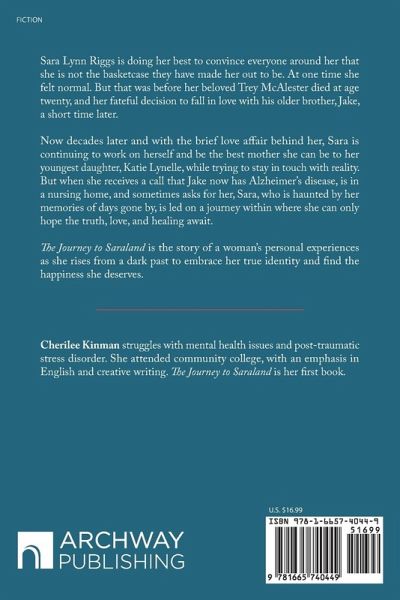 Sara Lynn Riggs is doing her best to convince everyone around her that she is not the basketcase they have made her out to be. At one time she felt normal. But that was before her beloved Trey McAlester died at age twenty, and her fateful decision to fall in love with his older brother, Jake, a short time later. Now decades later and with the brief love affair behind her, Sara is continuing to work on herself and be the best mother she can be to her youngest daughter, Katie Lynelle, while trying to stay in touch with reality. But when she receives a call that Jake now has Alzheimer's disease, is in a nursing home, and sometimes asks for her, Sara, who is haunted by her memories of days gone by, is led on a journey within where she can only hope the truth, love, and healing await. The Journey to Saraland is the story of a woman's personal experiences as she rises from a dark past to embrace her true identity and find the happiness she deserves.