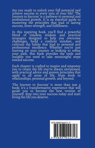 Are you ready to unlock your full potential and achieve success in every area of your life? 'The Journey to Success' is a pathway to personal and professional growth. It is an essential guide to mastering the principles that lead to lasting success, inner strength, and fulfillment. In this inspiring book, you'll find a powerful blend of timeless wisdom and practical strategies designed to help you overcome challenges, build a resilient mindset, and cultivate the habits that lead to personal and professional excellence. Whether you're just starting on your journey or looking to refine your path, this book provides the tools and insights you need to take meaningful steps toward success. Each chapter is crafted to inspire and empower you to create the life you've always envisioned, with practical advice and proven principles that apply to all areas of life, from work to relationships, personal growth, and beyond. 'The Journey to Success' is more than just a book; it's a transformative experience that will guide you to become the best version of yourself. Step into your success today and start living the life you deserve.