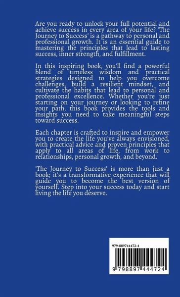 Are you ready to unlock your full potential and achieve success in every area of your life? 'The Journey to Success' is a pathway to personal and professional growth. It is an essential guide to mastering the principles that lead to lasting success, inner strength, and fulfillment. In this inspiring book, you'll find a powerful blend of timeless wisdom and practical strategies designed to help you overcome challenges, build a resilient mindset, and cultivate the habits that lead to personal and professional excellence. Whether you're just starting on your journey or looking to refine your path, this book provides the tools and insights you need to take meaningful steps toward success. Each chapter is crafted to inspire and empower you to create the life you've always envisioned, with practical advice and proven principles that apply to all areas of life, from work to relationships, personal growth, and beyond. 'The Journey to Success' is more than just a book; it's a transformative experience that will guide you to become the best version of yourself. Step into your success today and start living the life you deserve.