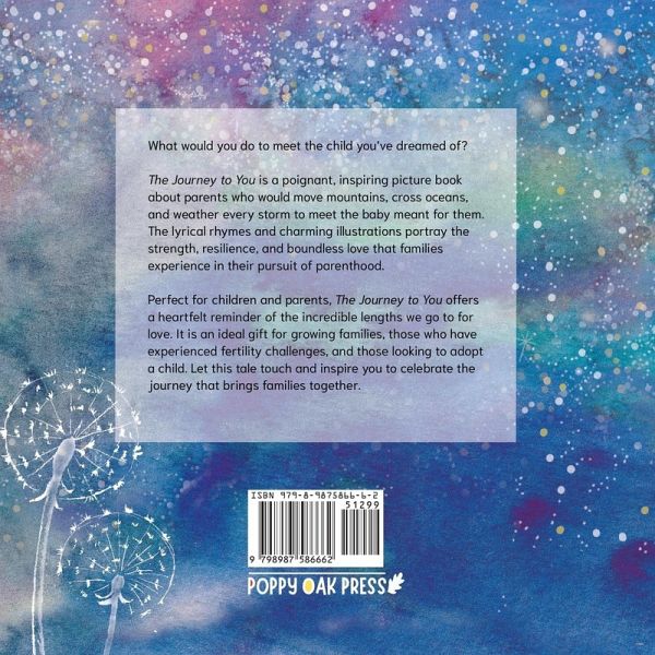 What would you do to meet the child you've dreamed of? The Journey to You is a poignant, inspiring picture book about parents who would move mountains, cross oceans, and weather every storm to meet the baby meant for them. The lyrical rhymes and charming illustrations portray the strength, resilience, and boundless love that families experience in their pursuit of parenthood.Perfect for children and parents, The Journey to You offers a heartfelt reminder of the incredible lengths we go to for love. It is an ideal gift for growing families, those who have experienced fertility challenges, and those looking to adopt a child. Let this tale touch and inspire you to celebrate the journey that brings families together.