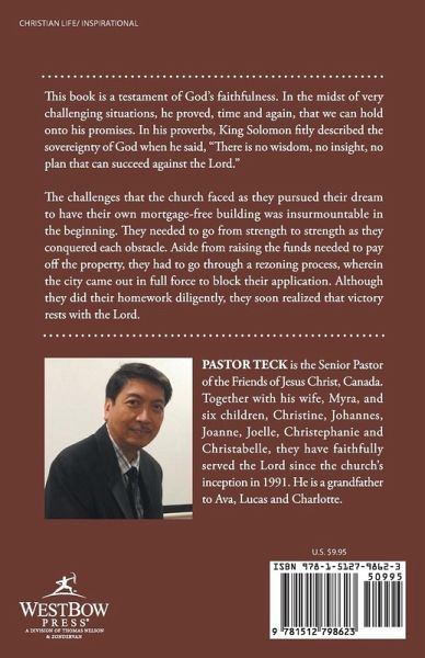 This book is a testament of God's faithfulness. In the midst of very challenging situations, he proved, time and again, that we can hold onto his promises. In his proverbs, King Solomon fitly described the sovereignty of God when he said, "There is no wisdom, no insight, no plan that can succeed against the Lord." The challenges that the church faced as they pursued their dream to have their own mortgage-free building was insurmountable in the beginning. They needed to go from strength to strength as they conquered each obstacle. Aside from raising the funds needed to pay off the property, they had to go through a rezoning process, wherein the city came out in full force to block their application. Although they did their homework diligently, they soon realized that victory rests with the Lord.