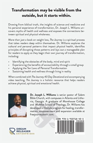 Transformation may be visible from the outside, but it starts within. Drawing from biblical truth, the insights of science and medicine and his personal experience of transformation, Dr. Joseph L. Williams uncovers myths of health and wellness and exposes the connections between spiritual and physical wholeness. More than just a book on weight loss, The Journey is a spiritual process that takes readers deep within themselves. Dr. Williams explores the cultural and personal patterns that impact physical health, identifies principles of disrupting those patterns and lays out a manageable plan for readers to apply as they begin their own journey of transformation, including: Identifying the obstacles of the body, mind and spirit Experiencing the benefits of accountability through a small group Applying the Ten Laws of Personal Transformation Sustaining health and wellness through living in reality When combined with The Journey 40 Day Devotional and accompanying video teaching, The Journey is a holistic resource that helps readers achieve physical, spiritual and emotional health.