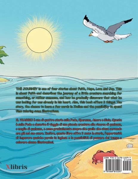 This is one of four stories about Faith, Hope, Love and Joy. This is about Faith and describes the journey of a little creature searching for something, or rather someone, and how he gradually discovers that what he was looking for was already in his heart. Also, this book offers 3 things: The story, a chance to learn a few words in Italian and the possibility to spend time coloring some illustrations.