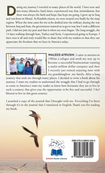 During my journey I traveled to many places of the world. I have seen and met many obstacles, hard times, experienced war, fear, intimidation, but there was always the faith and hope that kept me going. I grew up in Iraq and was born in Mosul. As Kurdish citizen, we were treated very badly by the Iraqi regime. When the time came for me to be drafted into the military during the war between Iraq and Iran, the government wanted us to go to war, but I took a di¿erent path. I did not join my post and that is when my story began. The long struggle, the 14 days walking through Iran, Turkey and Syria. I experienced going to Europe. I have seen it all and truly would like to share that with my readers so that they can appreciate the freedom that we have in America today.