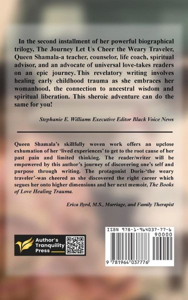 In the tenuous world of Doris Love, the protagonist in Breaking the Cycles of Pain: Soul Secrets-the first book in an autobiographical trilogy-is thrown out of the house by her strict minister father. Immediately, she is rescued by a 'Black knight in shining armor'-the classic 'hero'. In the second book of the trilogy, The Journey Let Us Cheer the Weary Traveler, Doris begins her voyage in sunny California. Mired in a world of powerlessness and shame, Doris tucks away her anger and pain about incest, racism, and male domination in a young 'wife 's failing marriage. The separation ignites her rage and revenge. Fortunately for Doris and her daughter Kabari, her early decision to understand life was more pressing than the need for retaliation. This recognition initiates her on a circuitous search for meaning. At a junior college, Doris meets a professor, Ms. Miller, who becomes her mentor and later, her therapist and her first recognized 'shehero'. Ms. Miller symbolizes the classic figure of a "fairy godmother" who donates her time, advice, and money ("magic") to help Doris negotiate the educational system and her quixotic search for her own authenticity. Doris enrolls in a university and the issues of identity, exile and being 'Black in a white world' continues. The seeker's cautionary tale of another marriage for convenience and returning to a theology that wearies rather than liberates lead to many experiences and lessons. Eventually, an awareness surfaces of knowing she must be herself and she doesn't need others to save her. Who, she is, cannot be lost. Doris's awakened voice and her sassy, rebellious nature empowered her for the future.As the journey evolves, child abuse, women's issues and social justices are themes that continued to characterize Doris's exploration of her adult life as she re-rights her life and she writes the third book of her trilogy, The Books of Love Healing the Secret.