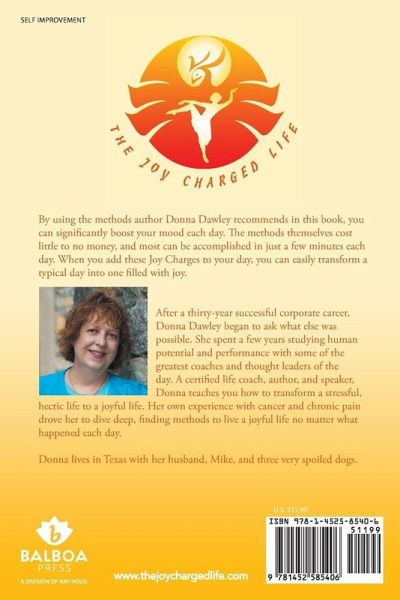 By using the methods author Donna Dawley recommends in this book, you can significantly boost your mood each day. The methods themselves cost little to no money, and most can be accomplished in just a few minutes each day. When you add these Joy Charges to your day, you can easily transform a typical day into one filled with joy.