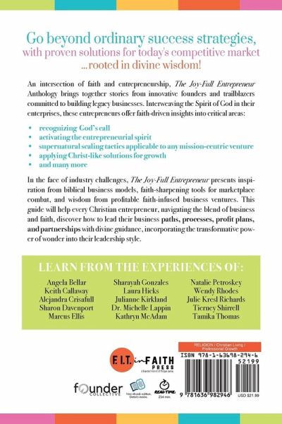 The Joy-Full Entrepreneur distills the essence of faith-infused entrepreneurship into a riveting anthology. Co-authored and curated by Tamra Andress and the F.I.T. in Faith community, this anthology sits at the enlightening intersection of business acumen, personal transformation, and Christian faith. Faith-driven entrepreneurs, seasoned and novice alike, share their real-world experiences, providing both testimonies of transformation and tactical advice.This entrepreneurial epistle uniquely blends biblical wisdom with innovative strategies, revealing how businesses can thrive when rooted in faith. It covers a wide array of topics, from Christ-like business management techniques to insights on maintaining joy amidst the trials of entrepreneurship. Each chapter explores a different facet of the entrepreneurial journey, offering rich insights into navigating the business world while remaining true to one's faith. The Joy-Full Entrepreneur Anthology is an essential read for Christian entrepreneurs and ministers in the marketplace who seek to harmonize their faith with their professional aspirations. Its unique blend of spiritual and business insights addresses the unique challenges and opportunities that faith-driven entrepreneurs face, making it an indispensable guide for those desiring to incorporate their faith more fully into their business endeavors.