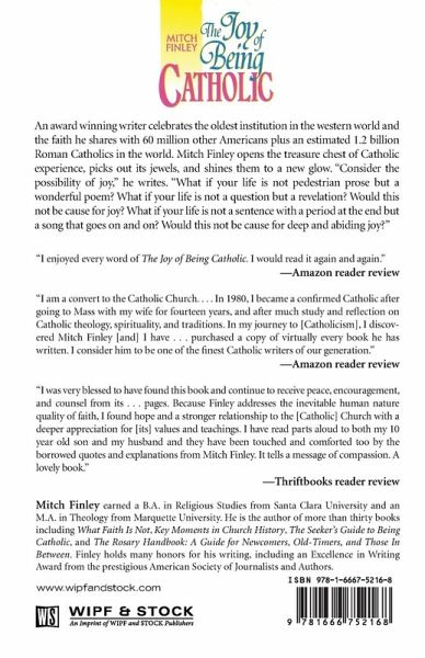 An award winning writer celebrates the oldest institution in the western world and the faith he shares with 60 million other Americans plus an estimated 1.2 billion Roman Catholics in the world. Mitch Finley opens the treasure chest of Catholic experience, picks out its jewels, and shines them to a new glow. ""Consider the possibility of joy,"" he writes. ""What if your life is not pedestrian prose but a wonderful poem? What if your life is not a question but a revelation? Would this not be cause for joy? What if your life is not a sentence with a period at the end but a song that goes on and on? Would this not be cause for deep and abiding joy?""