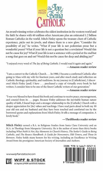 An award winning writer celebrates the oldest institution in the western world and the faith he shares with 60 million other Americans plus an estimated 1.2 billion Roman Catholics in the world. Mitch Finley opens the treasure chest of Catholic experience, picks out its jewels, and shines them to a new glow. ""Consider the possibility of joy,"" he writes. ""What if your life is not pedestrian prose but a wonderful poem? What if your life is not a question but a revelation? Would this not be cause for joy? What if your life is not a sentence with a period at the end but a song that goes on and on? Would this not be cause for deep and abiding joy?""
