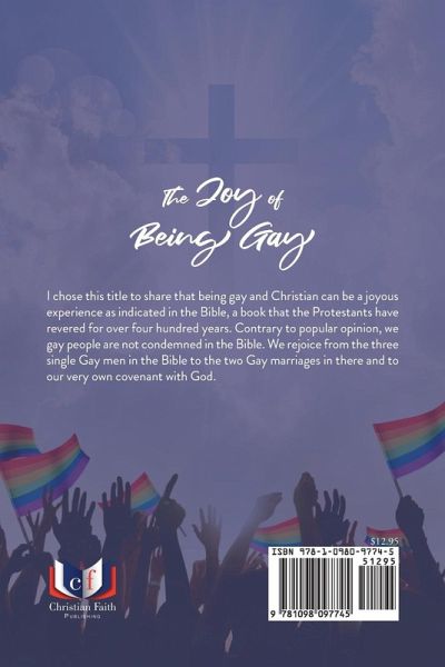I chose this title to share that being gay and Christian can be a joyous experience as indicated in the Bible, a book that the Protestants have revered for over four hundred years. Contrary to popular opinion, we gay people are not condemned in the Bible. We rejoice from the three single Gay men in the Bible to the two Gay marriages in there and to our very own covenant with God.