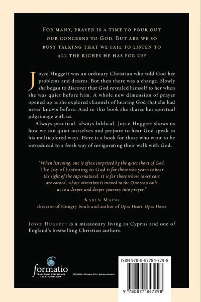 For many, prayer is a time to pour out our concerns to God. But are we so busy talking that we fail to listen to all the riches he has for us?Joyce Huggett was an ordinary Christian who told God her problems and desires. But then there was a change. Slowly she began to discover that God revealed himself to her when she was quiet before him. A whole new dimension of prayer opened up as she explored channels of hearing God that she had never known before. And in this book she shares her spiritual pilgrimage with us.Always practical, always biblical, Joyce Huggett shows us how we can quiet ourselves and prepare to hear God speak in his multicolored ways. Here is a book for those who want to be introduced to a fresh way of invigorating their walk with God.