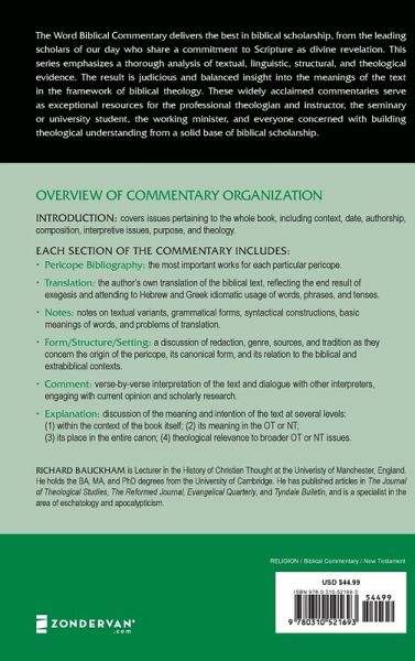Over 2 million copies sold in The Word Biblical Commentary series. This commentary series delivers the best in biblical scholarship from the leading scholars of our day who share a commitment to Scripture as divine revelation. It emphasizes a thorough analysis of textual, linguistic, structural, and theological evidence, resulting in judicious and balanced insight into the meanings of the text in the framework of biblical theology. These widely acclaimed commentaries serve as exceptional resources for the professional theologian and instructor, the seminary or university student, the working minister, and everyone concerned with building theological understanding from a solid base of biblical scholarship. Overview of Commentary Organization: Introduction--covers issues pertaining to the whole book, including context, date, authorship, composition, interpretive issues, purpose, and theology. Pericope Bibliography--a helpful resource containing the most important works that pertain to each particular pericope. Translation--the author's own translation of the biblical text, reflecting the end result of exegesis and attending to Hebrew and Greek idiomatic usage of words, phrases, and tenses, yet in reasonably good English. Notes--the author's notes to the translation that address any textual variants, grammatical forms, syntactical constructions, basic meanings of words, and problems of translation. Form/Structure/Setting--a discussion of redaction, genre, sources, and tradition as they concern the origin of the pericope, its canonical form, and its relation to the biblical and extra-biblical contexts in order to illuminate the structure and character of the pericope. Rhetorical or compositional features important to understanding the passage are also introduced here. Comment--verse-by-verse interpretation of the text and dialogue with other interpreters, engaging with current opinion and scholarly research. Explanation--brings together all the results of the discussion in previous sections to expose the meaning and intention of the text at several levels: (1) within the context of the book itself; (2) its meaning in the OT or NT; (3) its place in the entire canon; (4) theological relevance to broader OT or NT issues. General Bibliography--occurring at the end of each volume, this extensive bibliography contains all sources used anywhere in the commentary.