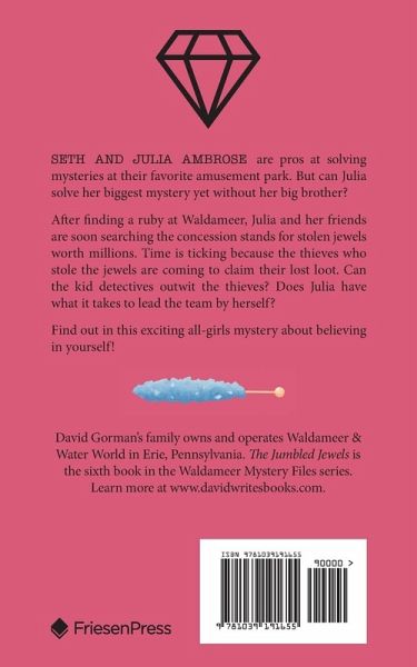 Seth and Julia Ambrose are pros at solving mysteries at their favorite amusement park. But can Julia solve her biggest mystery yet without her big brother? After finding a ruby at Waldameer, Julia and her friends are soon searching the concession stands for stolen jewels worth millions. Time is ticking because the thieves who stole the jewels are coming to claim their lost loot. Can the kid detectives outwit the thieves? Does Julia have what it takes to lead the team by herself? Find out in this exciting all-girls mystery about believing in yourself!
