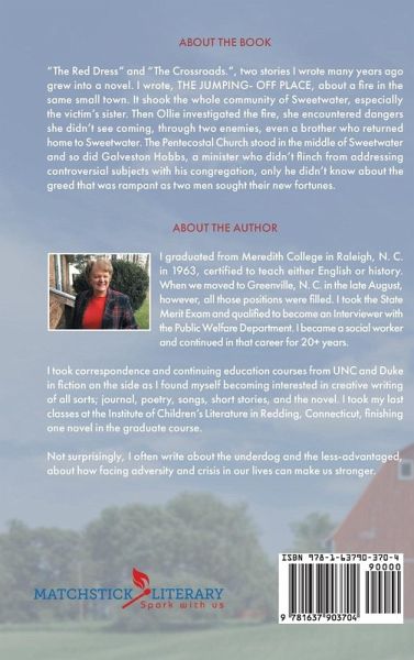 "The Red Dress" and "The Crossroads.", two stories I wrote many years ago grew into a novel. I wrote, THE JUMPING-OFF PLACE, about a ¿re in the same small town. It shook the whole community of Sweetwater, especially the victim's sister. Then Ollie investigated the ¿ re, she encountered dangers she didn't see coming, through two enemies, even a brother who returned home to Sweetwater. The Pentecostal Church stood in the middle of Sweetwater and so did Galveston Hobbs, a minister who didn't ¿ inch from addressing controversial subjects with his congregation, only he didn't know about the greed that was rampant as two men sought their new fortunes.…mehr