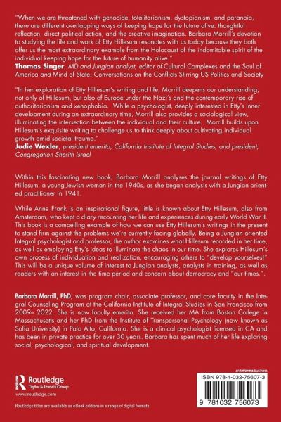 While Anne Frank is an inspirational figure, little is known about Etty Hillesum, also from Amsterdam, who kept a diary recounting her life and experiences during early World War II. This book is a compelling example of how we can use Etty Hillesum's writings in the present to stand firm against the problems we're currently facing globally. Being a Jungian oriented Integral psychologist and professor, the author examines what Hillesum recorded in her time, as well as employing Etty's ideas to illuminate the chaos in our time. She explores Hillesum's own process of individuation and realization, encouraging others to "develop yourselves!"