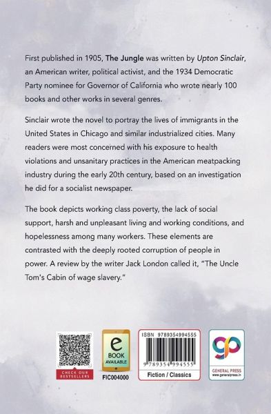 First published in 1905, 'The Jungle' was written by Upton Sinclair, an American writer, political activist, and the 1934 Democratic Party nominee for Governor of California who wrote nearly 100 books and other works in several genres. Sinclair wrote the novel to portray the lives of immigrants in the United States in Chicago and similar industrialized cities. Many readers were most concerned with his exposure to health violations and unsanitary practices in the American meatpacking industry during the early 20th century, based on an investigation he did for a socialist newspaper. The book depicts working class poverty, the lack of social support, harsh and unpleasant living and working conditions, and hopelessness among many workers. These elements are contrasted with the deeply rooted corruption of people in power. A review by the writer Jack London called it, "The Uncle Tom's Cabin of wage slavery."