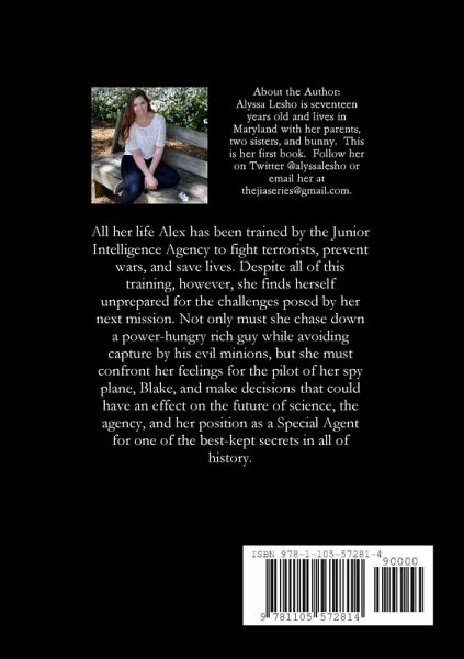 All her life Alex has been trained by the Junior Intelligence Agency to fight terrorists, prevent wars, and save lives. Despite all of this training, however, she finds herself unprepared for the challenges posed by her next mission. Not only must she chase down the Director of a powerful and extensive organization while avoiding capture by his men, but she must confront her feelings for the pilot of her spy plane, Blake, and make decisions that could have an effect on the future of science, the agency, and her position as a Special Agent for one of the best-kept secrets in all of history.