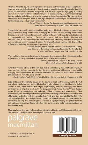 "Thomas Vincent Svogun's The Jurisprudence of Police is truly invaluable as a philosophically-informed treatment of police work...there is no other book like this one. The novelty, if not the genius, of this volume is its undertaking to deal with the street, if you will, by digging all the way down to the moral foundations and common good of political society...a very effective bridge between policing and philosophy, between practical and moral prescription. The greatest virtue of this work is that Svogun is both fluent in legal philosophical analysis, and so obviously at home with policing...Supremely worthwhile.' - Gerard V. Bradley, Editor, The American Journal of Jurisprudence; Professor of Law, University of Notre Dame Law School, USA
