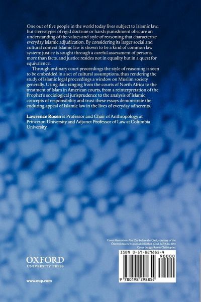 * Introduction * Part One: The socio-logic of Islamic legal reasoning * 1: Equity and discretion in Islamic law * 2: Islamic case-law and the logic of consequence * 3: Islamic law as common law: Power, culture, and the reconfiguration of legal taxonomies * 4: Responsibility and compensatory justice in Arab culture and law * Part Two: In and out of court * 5: From courtroom to courtyard: Law and custom in popular legal culture * 6: On the docket: Changing conventions in a Muslim court, 1965-1995 * 7: Local justice: A day in an alternative court * 8: Who do you trust? Structuring confidence in Arab law and society * Part Three: Justice past and present * 9: Islamic concepts of justice and injustice * 10: Muhammad's sociological jurisprudence * 11: Private thoughts, public utterances: Law, privacy, and the consequences for community * 12: Islam and Islamic culture in the courts of the United States * References * Index