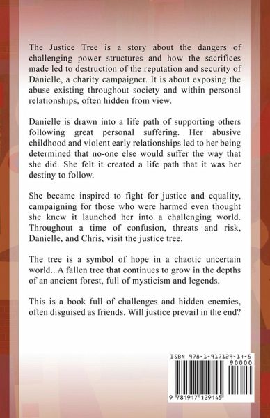 The Justice Tree is a story about the dangers of challenging power structures and how the sacrifices made led to destruction of the reputation and security of Danielle, a charity campaigner. It is about exposing the abuse existing throughout society and within personal relationships, often hidden from view. Danielle is drawn into a life path of supporting others following great personal suffering. Her abusive childhood and violent early relationships led to her being determined that no-one else would suffer the way that she did. She felt it created a life path that it was her destiny to follow. She became inspired to fight for justice and equality, campaigning for those who were harmed even thought she knew it launched her into a challenging world. Throughout a time of confusion, threats and risk, Danielle, and Chris, visit the justice tree. The tree is a symbol of hope in a chaotic uncertain world. A fallen tree that continues to grow in the depths of an ancient forest, full of mysticism and legends. This is a book full of challenges and hidden enemies, often disguised as friends. Will justice prevail in the end?