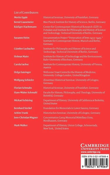 1. The Kaiser Wilhelm Society during National Socialism Susanne Heim, Carola Sachse, and Mark Walker; Part I. Research and Personnel Policies: 2. A success story? Highlighting the history of the Kaiser Wilhelm Society's general administration in the Third Reich Rudiger Hachtmann; 3. No time to debate and ask questions - forced labor for science in the Kaiser Wilhelm Society, 1939-1945 Berhard Strebel and Jens-Christian Wagner; 4. Adolf Butenandt between science and politics: from the Weimar Republic to the Federal Republic of Germany Wolfgang Scheider; Part II. Racial Research: 5. Brain research and the murder of the sick: the Kaiser Wilhelm Institute for Brain Research, 1937-1945 Hans-Walter Schmuhl; 6. Two hundred blood samples from Auschwitz: a Nobel Laureate and the link to Auschwitz Achim Trunk; 7. Racial purity, stable genes, and sex difference: gender in the making of genetic concepts Richard Goldschmidt and Fritz Lenz, 1916-1936 Helga Satzinger; Part III. 'Eastern Research,' 'Living Space,' Breeding Research: 8. Kog-Sagyz - a vital war reserve Susanne Heim; 9. Raw and advanced materials for an autarkic Germany: textile research in the Kaiser Wilhelm Society Gunther Luxbacher; 10. Political networking and scientific modernization: botanical research at the KWI for Biology and its place in national social science policy Bernd Gausemeier; Part IV. Military Research: 11. Ideology, armaments and resources: the Kaiser Wilhelm Institute for Metal Research and the 'German metals' 1933-1945 Helmut Maier; 12. Calculation, measurement, and leadership: war research at the Kaiser Wilhelm Institute for Fluid Dynamics, 1937-1945 Moritz Epple; 13. Chemical weapons research in National Socialism: the collaboration of the Kaiser Wilhelm Institutes with the military and industry Florian Schmaltz; 14. Nuclear weapons and reactor research at the Kaiser Wilhelm Institute for Physics Mark Walker; 15. Whitewash culture: how the Kaiser Wilhelm/Max Planck Society dealt with the Nazi past Carola Sachse; 16. The predecessor: the uneasy rapprochement between Carl Neuberg and Adolf Butenandt after 1945 Michael Schuring.