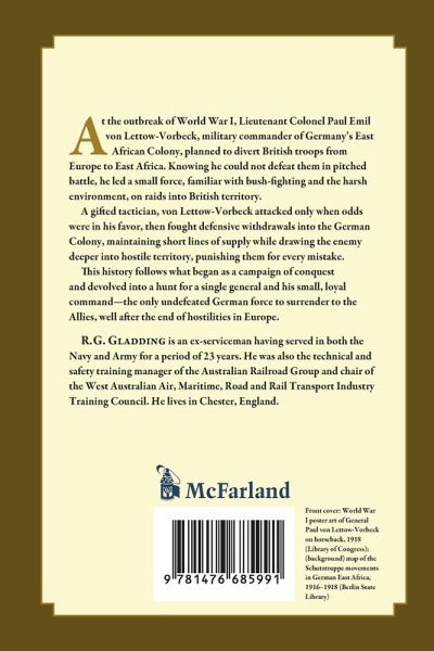 At the outbreak of World War I, Lieutenant Colonel Paul Emil von Lettow-Vorbeck, military commander of Germany's East African Colony, planned to divert British troops from Europe to East Africa. Knowing he could not defeat them in pitched battle, he led a small force--never more than 15,000 men--familiar with bush-fighting and the harsh environment, on raids into British territory. A gifted tactician, von Lettow-Vorbeck attacked only when odds were in his favor, then fought defensive withdrawals into the German Colony, maintaining short lines of supply while drawing the enemy deeper into hostile territory. The British and their allies committed 160,000 troops in East Africa. He led them in a game of "catch me if you can," punishing them for every mistake. Promoted to major-general by the Kaiser in 1917, von Lettow-Vorbeck led the only undefeated German force to surrender to the Allies, well after the end of hostilities in Europe. This history follows what began as a campaign of conquest and devolved into a hunt for a single general and his small, loyal command.