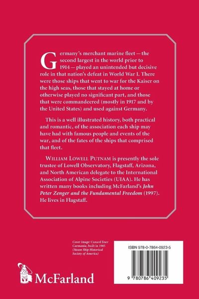 Germany's merchant Marine fleet--the second largest in the world prior to 1914--played an unintended but decisive role in that nation's defeat in World War I. There were those ships that went to war for the Kaiser on the high seas, those that stayed at home or otherwise played no significant part in the conflict, and those which were commandeered (mostly in 1917 and by the United States) and used against Germany. This is a well illustrated history, both practical and romantic, of the association each ship may have had with famous people and events of the war, and of the fates of the ships that comprised that fleet.