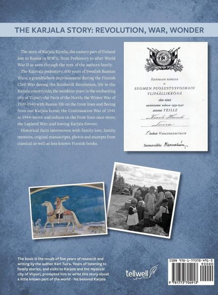 The story of Karjala/Karelia, the eastern part of Finland lost to Russia in WWII, from Prehistory to after World War II as seen through the eyes of the authors family. The Kalevala prehistory; 600 years of Swedish Russian Wars; a grandfathers imprisonment during the Finnish Civil War during the Bolshevik Revolution; life in the Karjala countryside; the sunshine years in the enchanting city of Viipuri–the Paris of the North; the Winter War of 1939-1940 with Russia–life on the front lines and fleeing from our Karjala home; the Continuation War of 1941 to 1944– terror and tedium on the front lines once more; the Lapland War; and leaving Karjala forever. Historical facts interwoven with family lore, family memoirs, original manuscripts, photos and excerpts from classical as well as less known Finnish books.