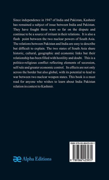 Since independence in 1947 of India and Pakistan, Kashmir has remained a subject of issue between India and Pakistan. They have fought three wars so far on the dispute and continue to be a source of irritant in their relations. It is also a flash point between the two nuclear powers of South Asia. The relations between Pakistan and India are easy to describe but difficult to explain. The two states of South Asia share historic, cultural, geographic and economic links but their relationship has been filled with hostility and doubt. This is a politico-religious conflict reflecting elements of secession, self rule and greater economic control. Its effects are not only across the border but also global, with its potential to lead to war between two nuclear weapon states. This book is a must read for anyone who wishes to learn about India Pakistan relation in context to Kashmir.