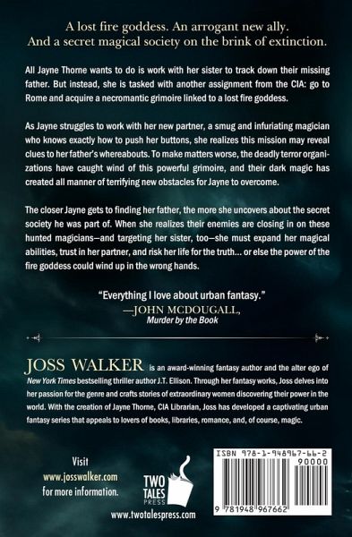 A lost fire goddess. An arrogant new ally. And a secret magical society on the brink of extinction. All Jayne Thorne wants to do is work with her sister to track down their missing father. But instead, she is tasked with another assignment from the CIA: go to Rome and acquire a necromantic grimoire linked to a lost fire goddess. As Jayne struggles to work with her new partner, a smug and infuriating magician who knows exactly how to push her buttons, she realizes this mission may reveal clues to her father's whereabouts. To make matters worse, the deadly terror organizations have caught wind of this powerful grimoire, and their dark magic has created all manner of terrifying new obstacles for Jayne to overcome. The closer Jayne gets to finding her father, the more she uncovers about the secret society he was part of. When she realizes their enemies are closing in on these hunted magicians-and targeting her sister, too-she must expand her magical abilities, trust in her partner, and risk her life for the truth... or else the power of the fire goddess could wind up in the wrong hands.