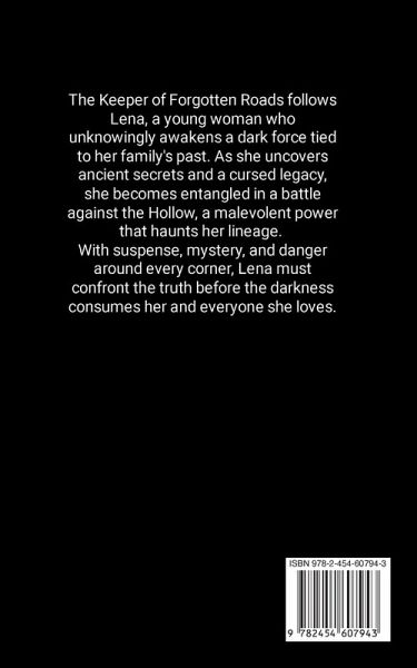 The Keeper of Forgotten Roads is a hauntingly beautiful tale of love, loss, and the intertwining of fate across time. Set against the backdrop of a crumbling village steeped in mystery, the story follows Lena, a young woman who stumbles upon an ancient amulet that binds her to a forgotten legacy. When she unknowingly awakens the long-buried power of the Hollow-a malevolent force that has haunted her family for generations-Lena is thrust into a world where the lines between reality and nightmare blur. The Hollow is no mere specter but a living force, tied to the very earth itself, and Lena's connection to it runs deeper than she could ever imagine. As she races to uncover the truth of her family's past, Lena is pursued by shadows from both the present and the past, each step leading her closer to a truth she's been destined to confront. The roads she must travel are perilous, and the memories she uncovers threaten to consume her. With every page, The Keeper of Forgotten Roads builds a sense of impending danger, laced with moments of tenderness and revelation. The question remains: will Lena be able to break the curse that binds her-or will the darkness of the Hollow claim her and those she loves forever? In this atmospheric novel, fate is not only a path we walk but one that we must often fight to escape.