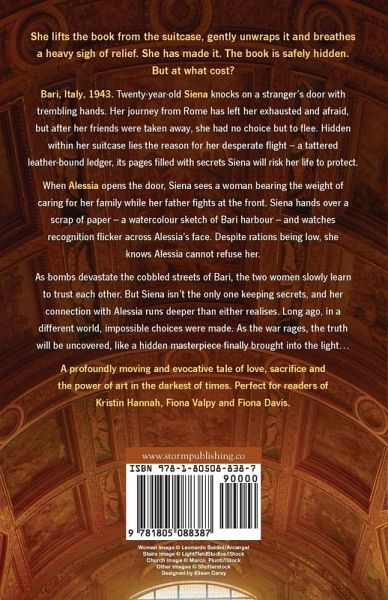 She lifts the book from the suitcase, gently unwraps it and breathes a heavy sigh of relief. She has made it. The book is safely hidden. But at what cost? Bari, Italy. 1943. Twenty-year-old Siena knocks on a stranger's door with trembling hands. Her journey from Rome has left her exhausted and afraid, but after her friends were taken away, she had no choice but to flee. Hidden within her suitcase lies the reason for her desperate flight - a tattered leather-bound ledger, its pages filled with secrets Siena will risk her life to protect. When Alessia opens the door, Siena sees a woman bearing the weight of caring for her family while her father fights at the front. Siena hands over a scrap of paper - a watercolour sketch of Bari harbour - and watches recognition flicker across Alessia's face. Despite rations being low, she knows Alessia cannot refuse her. As bombs devastate the cobbled streets of Bari, the two women slowly learn to trust each other. But Siena isn't the only one keeping secrets, and her connection with Alessia runs deeper than either realises. Long ago, in a different world, impossible choices were made. As the war rages, the truth will be uncovered, like a hidden masterpiece finally brought into the light... A profoundly moving and evocative tale of love, sacrifice, and the power of art in the darkest of times. Perfect for readers of Kristin Hannah, Fiona Valpy and Fiona Davis.