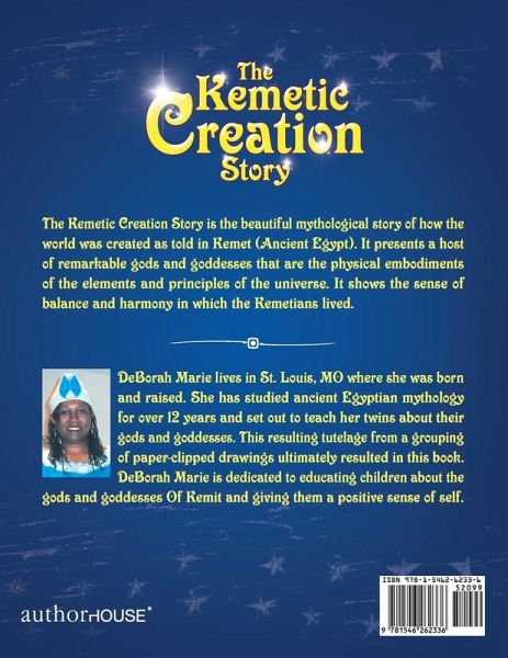 The Kemetic Creation Story is the beautiful mythological story of how the world was created as told in Kemet (Ancient Egypt). It presents a host of remarkable gods and goddesses that are the physical embodiments of the elements and principles of the universe. It shows the sense of balance and harmony in which the Kemetians lived.