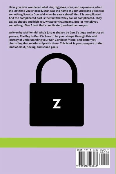 Have you ever wondered what rizz, big yikes, stan, and cap means, when the last time you checked, Stan was the name of your uncle and yikes was something Scooby Doo said when he saw a ghost? Gen Z is complicated. And the complicated part is the fact that they call us complicated. They call us cheugy and high key, whatever that means. But let me tell you something...Gen Z isn't that complicated, and neither are you. Written by a Millennial who's just as shaken by Gen Z's lingo and antics as you are, The Key to Gen Z is here to be your sherpa through this wild journey of understanding your Gen Z child or friend, and better yet, cherishing that relationship with them. This book is your passport to the land of clout, flexing, and squad goals.