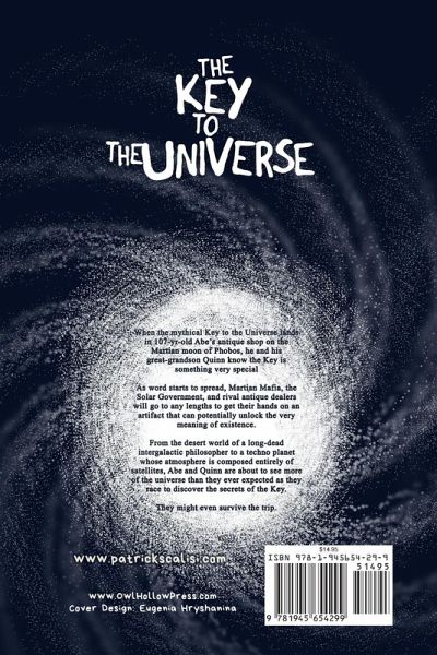 When the mythical Key to the Universe lands in 107-yr-old Abe's antique shop on the Martian moon of Phobos, he and his great-grandson Quinn know the Key is something very special As word starts to spread, Martian Mafia, the Solar Government, and rival antique dealers will go to any lengths to get their hands on an artifact that can potentially unlock the very meaning of existence. From the desert world of a long-dead intergalactic philosopher to a techno planet whose atmosphere is composed entirely of satellites, Abe and Quinn are about to see more of the universe than they ever expected as they race to discover the secrets of the Key. They might even survive the trip.