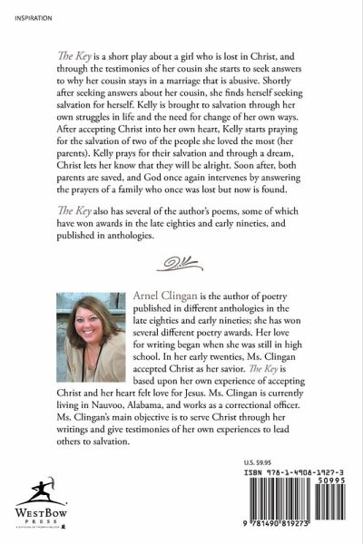 The Key is a short play about a girl who is lost in Christ, and through the testimonies of her cousin she starts to seek answers to why her cousin stays in a marriage that is abusive. Shortly after seeking answers about her cousin, she finds herself seeking salvation for herself. Kelly is brought to salvation through her own struggles in life and the need for change of her own ways. After accepting Christ into her own heart, Kelly starts praying for the salvation of two of the people she loved the most (her parents). Kelly prays for their salvation and through a dream, Christ lets her know that they will be alright. Soon after, both parents are saved, and God once again intervenes by answering the prayers of a family who once was lost but now is found. The Key also has several of the author's poems, some of which have won awards in the late eighties and early nineties, and published in anthologies.