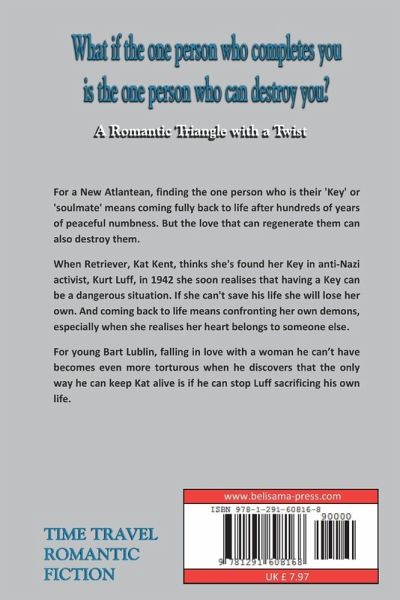 What if the one person who completes you is the one person who can destroy you? For a New Atlantean, finding the one person who is their 'Key' or 'soulmate' means coming fully back to life after hundreds of years of peaceful numbness. But the love that can regenerate them can also destroy them. When Retriever, Kat Kent, thinks she's found her Key in anti-Nazi activist, Kurt Luff, in 1942 she soon realises that having a Key can be a dangerous situation. If she can't save his life she will lose her own. And coming back to life means confronting her own demons, especially when she realises her heart belongs to someone else. For young Bart Lublin, falling in love with a woman he can't have becomes even more torturous when he discovers that the only way he can keep Kat alive is if he can stop Luff sacrificing his own life.