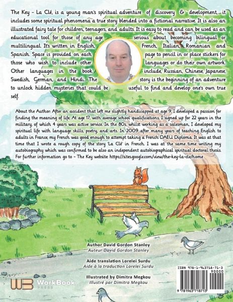 The Key - La Clé, is a young man's spiritual adventure of discovery & development, it includes some spiritual phenomena and a true story blended into a fictional narrative. The story is the beginning of an adventure to unlock hidden mysteries that could be useful to find and develop one's own true self. It is also an illustrated fairy tale for children, teenagers, and adults. It is easy to read and can be used as an educational tool for those of any age serious about becoming bilingual or multilingual. It's written in English, French, Italian, Romanian, and Spanish. Space is provided on each page to pencil in or place stickers for those who wish to include other languages or do their own artwork. Other languages in the book include, Russian, Chinese, Japanese, Swedish, German, and Hindi. The story is the beginning of an adventure to unlock hidden mysteries that could be useful to find and develop one's own true self.