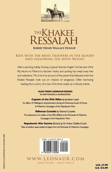 Ride with the Moss Troopers in the bloody days following the Sepoy Revolt. After a sporting holiday, Dunlop, a typical Victorian English Civil Servant of the Raj returns to Meerut to discover mutiny and uprising has swept away lives and institutions. This is his true account of the period that followed when the Khakee Ressalah rode out on missions of vengeance. Often harrowing reading, this is a story of a man of his times swept up in bloody events.