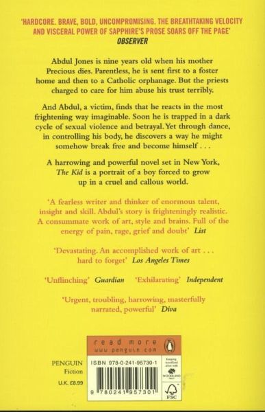 In Push Sapphire told the story of Precious Jones and in 2009 her book was adapted into the Oscar-winning film Precious. The Kid is Sapphire's heartbreaking sequel to Push. Abdul is nine years old when his mother dies. Parentless he is sent to a foster home and then to a Catholic orphanage. But the priests charged to care for him abuse his trust terribly. Abdul reacts in the most frightening way imaginable. Soon he is trapped in a dark cycle of sexual violence and betrayal. Yet through dance in controlling his body he discovers a way he might somehow break free and become himself . . . A harrowing and powerful novel set in New York The Kid is a portrait of a boy growing up in a cruel world. 'Prepare to be harrowed; I was sobbing by the end of the first chapter . . . Sapphire writes with a burning anger that gives this novel an explosive power' The Times 'Hardcore. Brave bold uncompromising. The breathtaking velocity and visceral power of Sapphire's prose soars off the page' Observer 'Captures the gruelling heartbreak of trying to love anything when the world doesn't love you enough' New York Herald Tribune 'A dark and punishing tale' Big Issue 'A fearless writer and thinker of enormous talent insight and skill. Abdul's story is frighteningly realistic. A consummate work of art style and brains. Full of the energy of pain rage grief and doubt' List 'Devastating. An accomplished work of art . . . hard to forget' Los Angeles Times 'Urgent troubling harrowing masterfully narrated powerful' Diva Sapphire is the author of two poetry collections Black Wings and Blind Angels and American Dreams and the bestselling novel Push. The film adaptation of her novel Precious received the Academy Awards for Best Screenplay and Best Supporting Actress - for actor Mo'Nique - in addition to the Grand Jury Prize and Audience awards in the U.S. Dramatic Competition at Sundance. In 2009 she was a recipient of a United States Artist Fellowship. She lives in New York City.