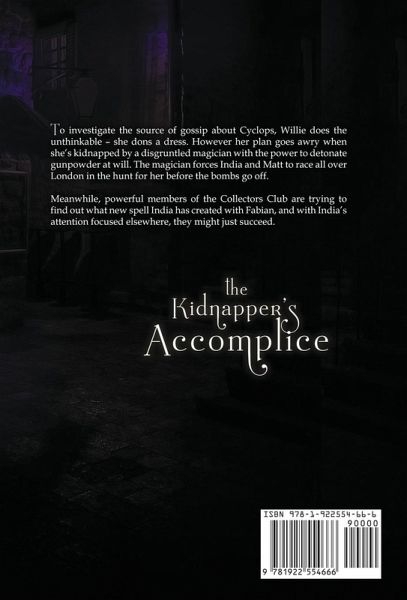 To investigate the source of gossip about Cyclops, Willie does the unthinkable - she dons a dress. However her plan goes awry when she's kidnapped by a disgruntled magician with the power to detonate gunpowder at will. The magician forces India and Matt to race all over London in the hunt for her before the bombs go off. Meanwhile, powerful members of the Collectors Club are trying to find out what new spell India has created with Fabian, and with India's attention focused elsewhere, they might just succeed.