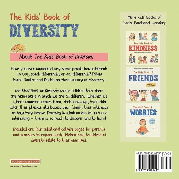 Teach your child about diversity, equality and inclusion ¿ Explores differences in origin, housing, abilities, appearance, family units, culture and more, gently helping children to think about how they are different from, and similar to other people. ¿ Fosters greater self-awareness and empathy, the basis for learning to be respectful and kind. ¿ The emphasis on inclusivity helps children learn to value and respect the uniqueness of each individual, while also building their own positive self-esteem. ¿ Includes four diversity activity pages. Sit with your child and talk through diversity activities to help them reach a deeper understanding of diversity and their own identity. Try Let's Celebrate Being You, Find Someone Who or Things I Like About Me! Especially recommended for ages 3 to 8.