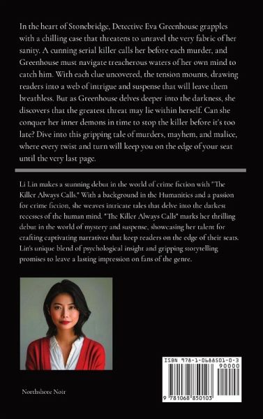 "As the house lights flared to life, piercing the darkness with clinical brightness, the Stonebridge Arts Center became a tableau of confusion and terror." In the heart of Stonebridge, Detective Eva Greenhouse grapples with a chilling case that threatens to unravel the very fabric of her sanity. A cunning serial killer calls her before each murder, and Greenhouse must navigate treacherous waters of her own mind to catch him. With each clue uncovered, the tension mounts, drawing readers into a web of intrigue and suspense that will leave them breathless. But as Greenhouse delves deeper into the darkness, she discovers that the greatest threat may lie within herself. Can she conquer her inner demons in time to stop the killer before it's too late? Dive into this gripping tale of murders, mayhem, and malice, where every twist and turn will keep you on the edge of your seat until the very last page.