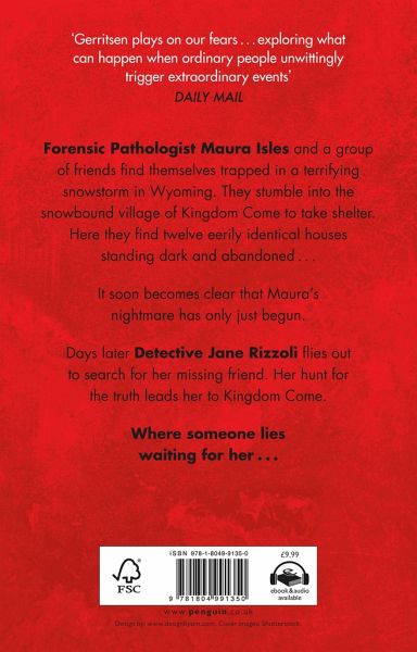 'Gerritsen plays on our fears . . . exploring what can happen when ordinary people unwittingly trigger extraordinary events.' Daily Mail Forensic Pathologist Maura Isles and a group of friends find themselves trapped in a terrifying snowstorm in Wyoming. They stumble into the snowbound village of Kingdom Come to take shelter. Here they find twelve eerily identical houses standing dark and abandoned . . . It soon becomes clear that Maura's nightmare has only just begun. Days later Detective Jane Rizzoli flies out to search for her missing friend. Her hunt for the truth leads her to Kingdom Come. Where someone lies waiting for her . . .