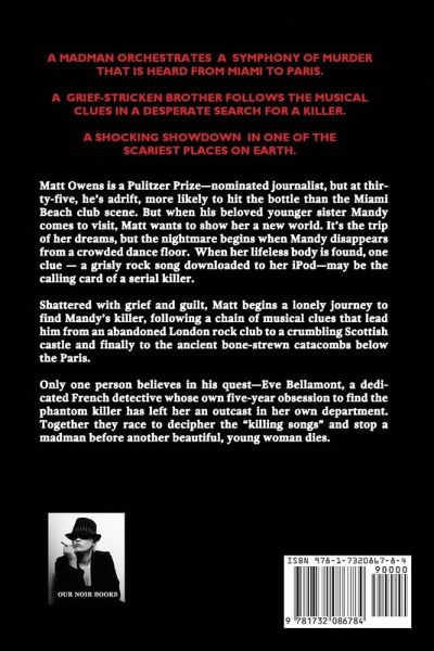 Matt Owens is a Pulitzer Prize nominated journalist, but at 35 he's adrift, more inclined to hit the bottle alone than the Miami Beach club scene. But when his beloved younger sister Mandy comes to visit, Matt wants to show her a new world. It's the trip of her dreams, but the nightmare begins when Mandy disappears from a crowded dance floor. When her lifeless body is found, one clue-a grisly rock song downloaded onto her iPod-may be the calling card of a serial killer. Shattered with grief and guilt, Matt vows to find Mandy's killer, following a chain of musical clues that lead him from an abandoned London rock club to a crumbling Scottish castle and finally to the ancient bone-strewn catacombs below Paris. Only one person believes in his quest-Eve Bellamont, a dedicated French detective whose own five-year obsession to find the same killer has made her an outcast in her own department. Together, they race to decipher the "killing songs" that the madman leaves with each victim and stop him before another beautiful young woman dies.