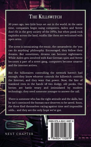50 years ago, two little boys set out in the world. At the same time, companies begin using computers. Aiden and Stevie don't fit in the grey society of the 1970s, but when punk rock explodes across the land, misfits like them are welcomed with open arms. The scene is intoxicating: the music, the camaraderie, the 'you can do anything' philosophy. Encouraged, they follow their dreams. But sometimes, dreams can become nightmares. While Aiden gets involved with East German spies and Stevie becomes a part of a street gang, computers become smarter and the internet arrives. But the billionaires controlling the network haven't had enough; they know whoever controls the killswitch controls the Internet, and they want that power. Now, the fate of mankind rests in the hands of two dodgy, old punks. Our heroes are battle weary and intimidated by modern technology; they need someone younger to answer the call. There is someone who has the right attitude and the skills, but he isn't convinced the human race deserves to be saved. Soon, the three find themselves racing against time and impossible odds... and they are the only hope we've got.